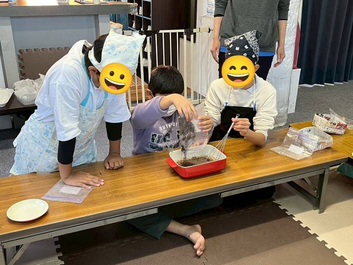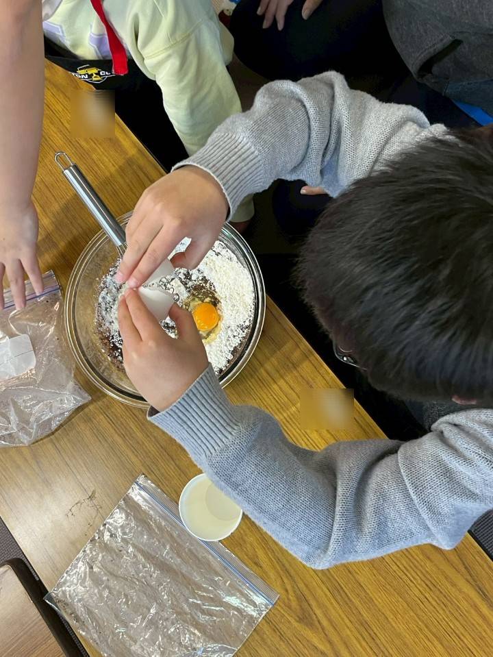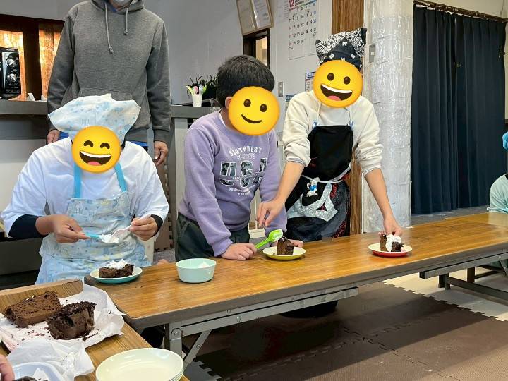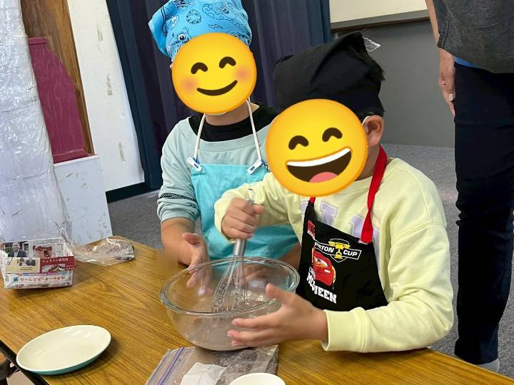 蒸しケーキを焼いている間は生クリーム作り!💡ハンドミキサーを初めて体験する子供も多く、良い機会になりました。♪