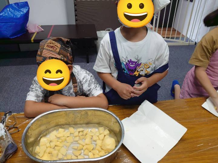 この日のクッキングは低学年が多かったので、簡単に美味しく作れるカレーを作りました。💡