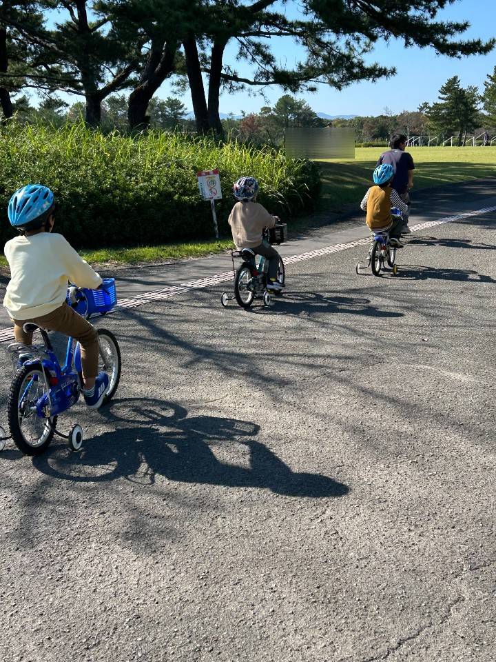 それから一人一人補助輪無しの自転車にも挑戦してみましたが、まだまだ難しい様子だったものの、補助輪付きの自転車にはだいぶ慣れていたので公園を外周してちょっとしたサイクリングも楽しめていましたよ。♪