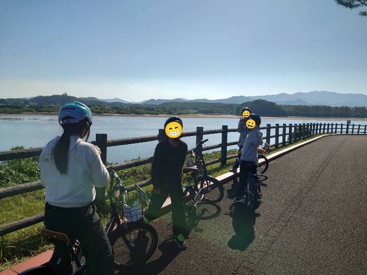 普段はサンセットブリッジを渡った後はすぐある公園で遊ぶのですが、この日は公園遊びよりその先にも行ってみたいという子供たちもいたので、自然少年の家の方まで行ってサイクリングを楽しみました。😁