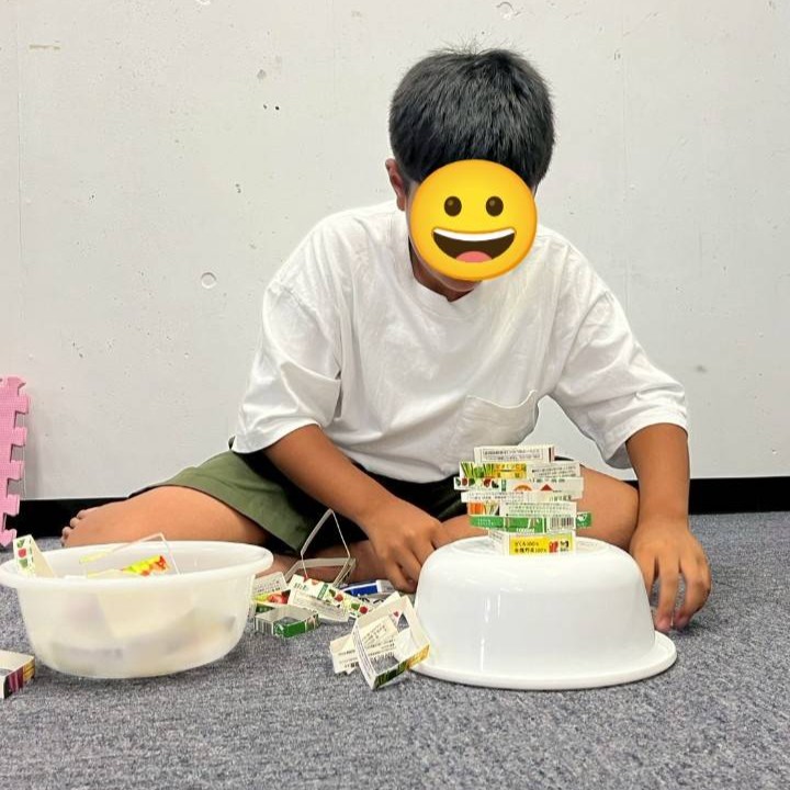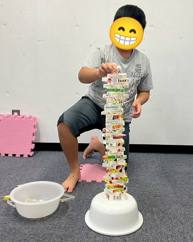 四角に切った牛乳パックを積み上げていく牛乳パックバランスゲームをしました!
