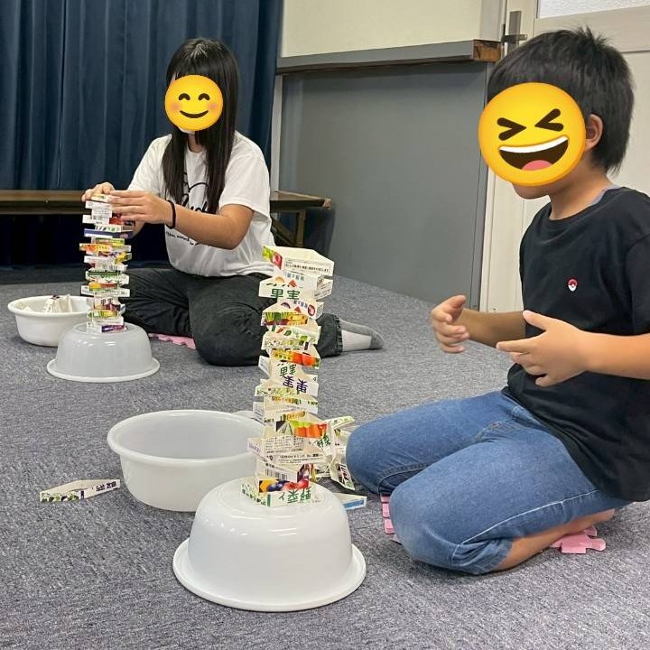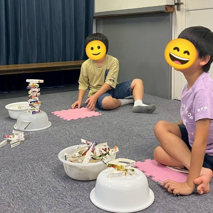 普段は3~4人のチームを作って、チームで一人ずつ順番に置いて行い、崩してしまったお友達に対して責めてしまう子供に対して声掛けを行ったりしていますが、今回は個人戦で行ったことで皆夢中になって取り組んでいました!💡