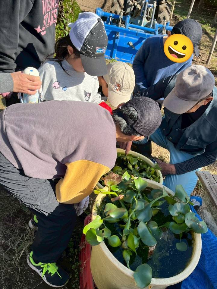 収穫中はメダカや虫(カマキリ)等にも触れ、大満足の子供たちでした。♪