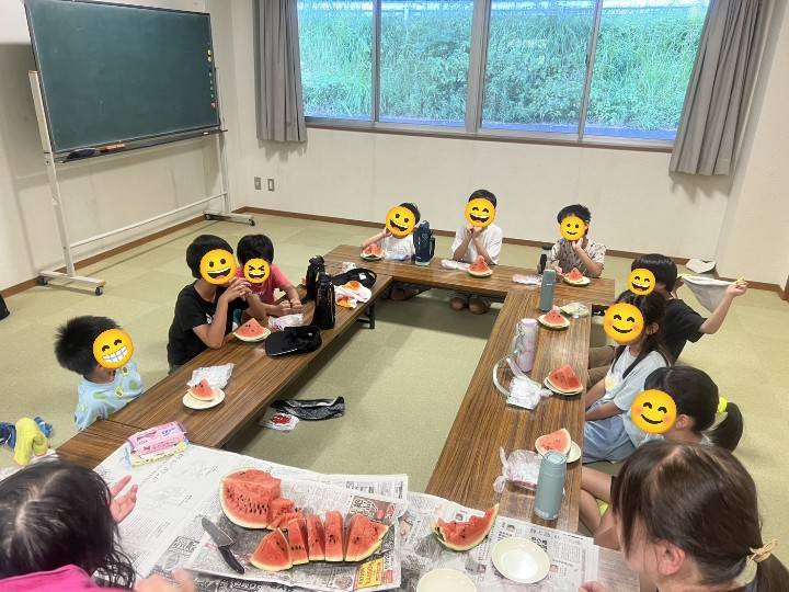 その後は涼しいクーラーの効いた部屋でスイカを食べ、